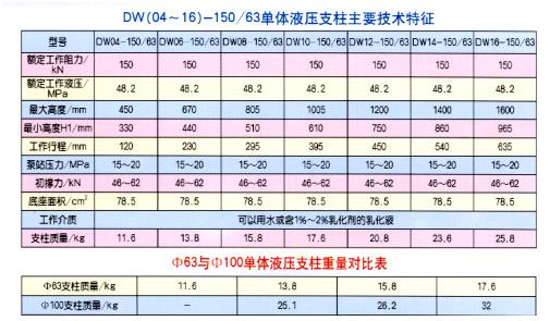 DW(04~16)-150/63单体液压支柱产品简介:单体液压支柱是煤矿生产必不可少的安全设备,用于提高安全生产,防止冒顶。现有的单体液压支柱一般规格较长行程较短,适用于煤层较高的工作面,但对薄煤层的采区却不使用。应客户的要求我公司研制的Φ63缸径矿用单体液…