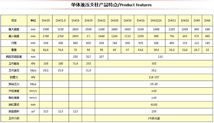 DW单体液压支柱参数